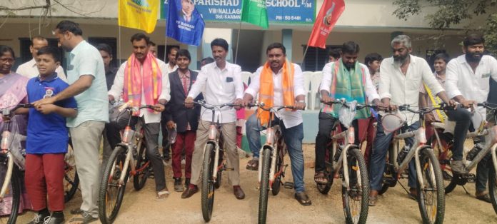 కాకతీయ, కరీంనగర్ : ప్రభుత్వ పాఠశాలల్లో విద్యతో పాటు విలువల బోధ జరుగుతుందని తిమ్మాపూర్ మండల బీజేపీ అధ్యక్షుడు సుగుర్తి జగదీశ్వరాచారి అన్నారు. కేంద్ర మంత్రి బండి సంజయ్ ‘మోదీ గిఫ్ట్’ పేరిట 10వ తరగతి విద్యార్థులకు ఉచితంగా అందిస్తున్న సైకిళ్లను గురువారం నల్లగొండ జడ్పీ పాఠశాల విద్యార్థులకు పంపిణీ చేశారు. పాఠశాల ప్రధానోపాధ్యాయులు వెంకటేశ్వర్ అధ్యక్షతన నిర్వహించిన ఈ కార్యక్రమంలో జగదీశ్వరాచారి ముఖ్య అతిథిగా పాల్గొన్నారు. ఈ సందర్భంగా జగదీశ్వరాచారి మాట్లాడుతూ ప్రభుత్వ పాఠశాలల్లో నాణ్యమైన విద్యతో పాటు సంస్కారాలు, విలువలు బోధించబడుతున్నాయని అన్నారు. విద్యార్థుల సంఖ్య పెంచేందుకు గ్రామస్తులు అందరూ సహకరించాలని కోరారు. కష్టపడి చదివి ఉత్తమ ఫలితాలు సాధిస్తే భవిష్యత్ మరింత उज్వలంగా ఉంటుందని విద్యార్థులకు సూచించారు.