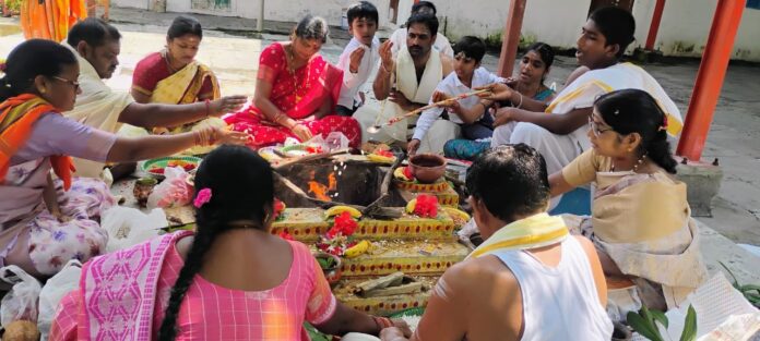కాకతీయ, గీసుకొండ: శ్రీ మద్విరాట్ విశ్వకర్మ యజ్ఞ మహోత్సవాన్ని పురస్కరించుకొని 16 వ డివిజన్ ధర్మారం రామలింగేశ్వర స్వామి దేవస్థానంలో ధర్మారం విశ్వబ్రాహ్మణ సంఘం కన్వీనర్ కొక్కొండ శ్రీకాంత్ ఆధ్వర్యంలో విశ్వకర్మ యజ్ఞ మహోత్సవాన్ని ఘనంగా నిర్వహించారు. ఈ కార్యక్రమానికి ముఖ్య అతిథిగా రాష్ట్ర విశ్వబ్రాహ్మణ సంఘం ప్రధాన కార్యదర్శి సొల్లేటి కృష్ణమాచారి హాజరై మాట్లాడుతూ విశ్వ బ్రాహ్మల్లంతా కలిసికట్టుగా ఉండాలని ఆకాంక్షించారు.