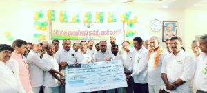గుమస్తాల సంక్షేమ నిధి రూ.10 లక్షలను అందజేస్తున్న చాంబర్ ఆఫ్ కామర్స్ వ్యాపారులు