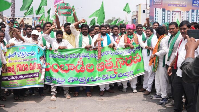 కాకతీయ, కొత్తగూడెం : భద్రాద్రి జిల్లా కేంద్రంలో లంబాడీ జేఏసి ఆధ్వర్యంలో భూక్యా రమేష్, లావుడ్య ప్రసాద్ నాయక్ అధ్యక్షతన వేలాదిగా తరలి వచ్చిన గిరిజనులు (లంబాడీ) తో లక్ష్మీదేవిపల్లి మార్కెట్ యాడ్ నుండి పోస్ట్ ఆఫీస్ అంబేద్కర్ సెంటర్ వరకు లంబాడీ ఆత్మ గౌరవ ర్యాలీ నిర్వహించారు. వేలాదిగా తరిలి వచ్చి శాంతియుత ర్యాలీలో పాల్గొన్న లంబాడీ బిడ్డలకు జిల్లా లంబాడీ జేఏసి నాయకులు ఇస్లావత్ లక్ష్మణ్ నాయక్, గుగులోత్ రాజేష్ నాయక్, డాక్టర్ శంకర్ నాయక్ లు ధన్యవాదాలు తెలిపారు.