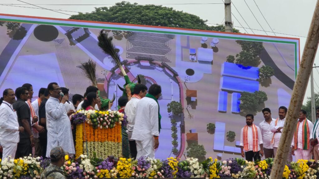 ఆలయ పునర్నిర్మాణానికి సీఎం రేవంత్ రెడ్డి శంకుస్థాపన