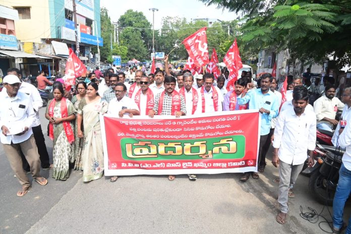 కాకతీయ, ఖమ్మం టౌన్ : కాంగ్రెస్ పార్టీ ఎన్నికల సమయంలో ఇచ్చిన ఆరు గ్యారంటీలను ఖచ్చితంగా అమలు చేయాలని డిమాండ్ చేస్తూ సోమవారం ఖమ్మం పట్టణంలో సీపీఐ (ఎంఎల్) మాస్ లైన్ ఆధ్వర్యంలో నిరసన వ్యక్తం చేశారు. ఈసందర్భంగా పట్టణంలో నిరసన ర్యాలీ నిర్వహించిన అనంతరం కలెక్టర్కు వినతిపత్రం అందజేశారు. తొలుత ర్యాలీ పెవిలియన్ గ్రౌండ్ నుంచి వైరా రోడ్డు మీదగా జడ్పీ సెంటర్ వరకు నిర్వహించారు. ఈ సందర్భంగా ప్రదర్శనలో ఆరు గ్యారెంటీలను అమలు చేయాలని పెద్ద ఎత్తున నినాదాలు చేశారు. ఈ సందర్భంగా సీపీఐ (ఎంఎల్ ) మాస్ లైన్ జిల్లా కార్యదర్శి వర్గ సభ్యులు ఆవుల వెంకటేశ్వర్లు సీవై పుల్లయ్య మాట్లాడుతూ ఆరు గ్యారంటీల హామీలకు తోడు 420 వాగ్దానాలు చేసిన కాంగ్రెస్ రేవంత్ రెడ్డి ప్రభుత్వం రాష్ట్రంలో అధికారంలోకి వచ్చిందన్నారు. రెండేండ్లు దాటి ముచ్చటగా మూడో ఏట ప్రవేశించే సందర్భాన డిశంబర్ 9న సంబరాలు జరుపుకోబోతున్నదని ఎద్దేవాచేశారు. అకాల వర్షాలతో పత్తి, వరి, మొక్కజొన్న, సోయా తదితర పంటలు తడిసి పోయాయి. అసలే దిగుబడి తక్కువ. పైగా పత్తిని సీసీఐ కొనుగోలు చేయడానికి రైతులను ముప్పుతిప్పలు పెడుతున్నది. పత్తి నల్లబడిందని, తేమ శాతం ఎక్కువ వుందని కొనుగోలు నిరాకరిస్తున్నారు. ఇదంతా రైతును మార్కెట్లో తక్కువగా అమ్ముకునేలా చేయడానికే, ఆ తరువాత సీసీఐ అధికారులు దళారులతో కుమ్మక్కై భాగం పంచుకుంటారు. సీసీఐ కొనుగోళ్ళు ఆలస్యంగా ఆరంభించడమే అన్యాయం. పైగా కేంద్ర ప్రభుత్వం అమెరికా ఆంక్షలకు తలొగ్గి మన మార్కెట్లోకి అమెరికా పత్తి దిగుమతులపై వున్న 11 శాతం సుంకాలను డిసెంబర్ వరకు ఎత్తి వేసింది. మన పత్తికి రేటు రాకుండా చేసి, అమెరికా పత్తిని దిగుమతి చేసుకోవడం రైతాంగానికి ద్రోహం చేయడమే. అలానే తడిసిన అన్ని రకాల పంటలను కొనుగోలు చేయా లని ఆర్ గ్యారంటీల అమలుకు కృషి చేయాలని డిమాండ్ చేశారు .